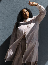 Made for anyone and everyone, the Nat Shirt is a versatile staple designed to bring ease to your wardrobe. Features a classic standing collar, buttons from top to bottom, and an oversized front patch pocket. Made of lightweight handloom woven cotton with a relaxed, airy fit.