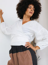 Paige Wrap Top, white poplin