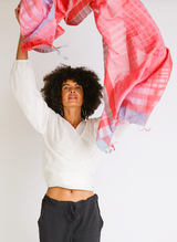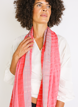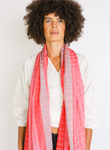Our go-to scarf, perfect for local and foreign jaunts and journeys. Cut from the softest, lightest and 100% handspun cotton, you won't want to take yours off. This scarf was handloom woven by our partners at Women Weave in Maheshwar, Madhya Pradesh. Women Weave is devoted to preserving the craft of handloom weaving by providing training and meaningful work for women across India.