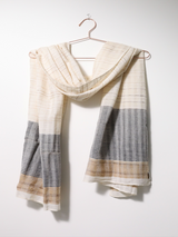 Our go-to scarf, perfect for local and foreign jaunts and journeys. Cut from the softest, lightest and 100% hand spun ahimsa silk & cotton, you won't want to take yours off. This scarf was handloom woven by our partners at Women Weave in Maheshwar, Madhya Pradesh. Women Weave is devoted to preserving the craft of handloom weaving by providing training and meaningful work for women across India.